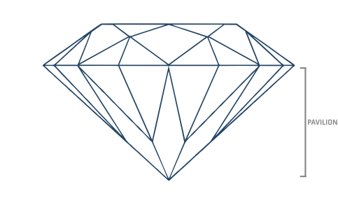 if a diamond is cut too shallow ligth will escape through the lower part of the diamond, the pavilion, reducing the diamond's sparkle to the observer.
