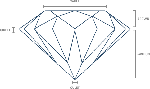The diamond cut is the most important element to consider when buying a diamond. The cut is the biggest factor in creating sparkle and fire, and without a high cut grade even a diamond of high quality can appear dull and lifeless. A diamond cut poorly and too deep can face-up smaller than it actually is. A well-cut diamond will direct more light through the crown. A diamond with a depth that's too shallow or too deep will allow light to escape through the sides or the bottom of the stone.